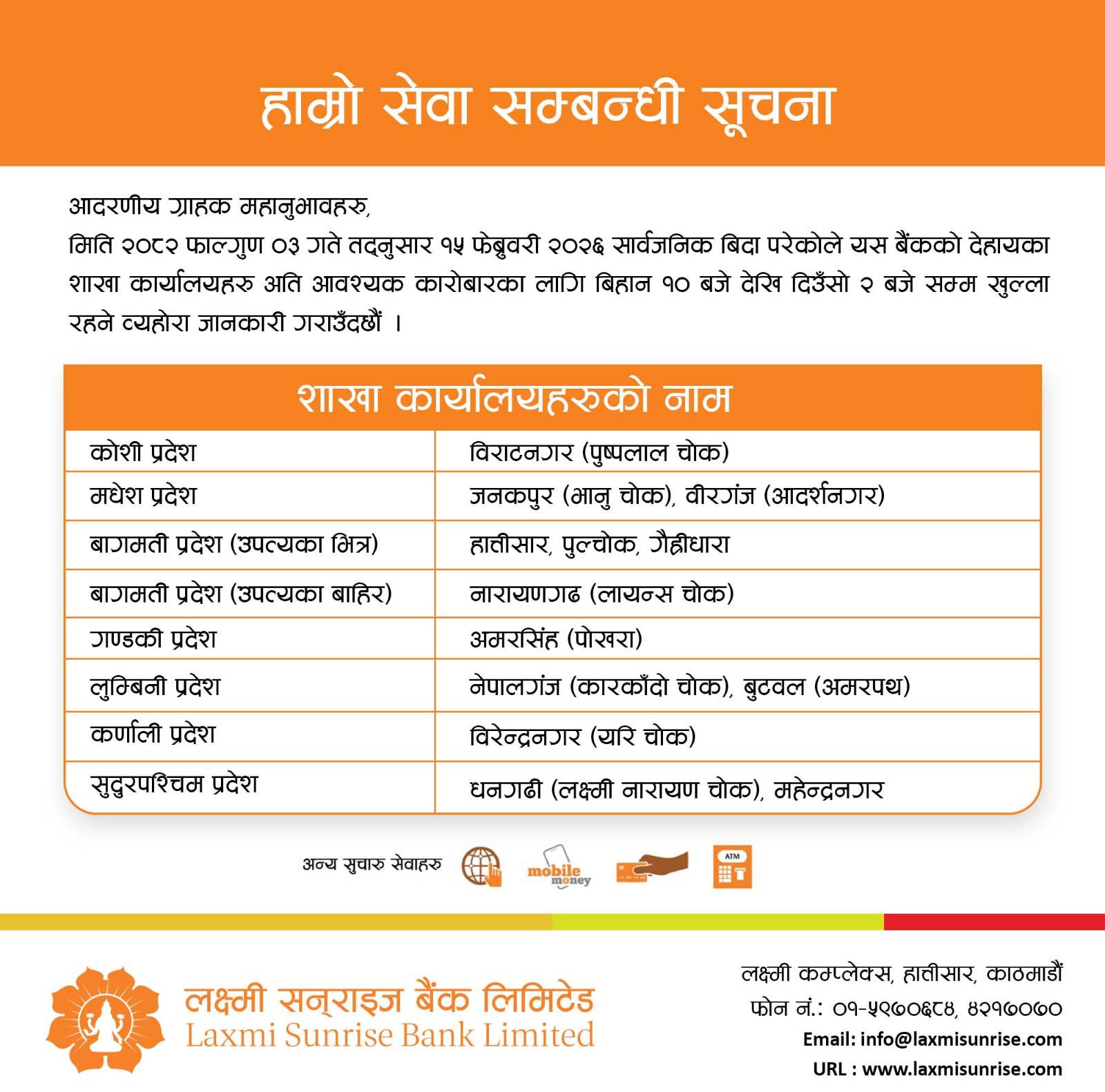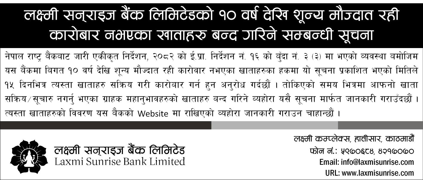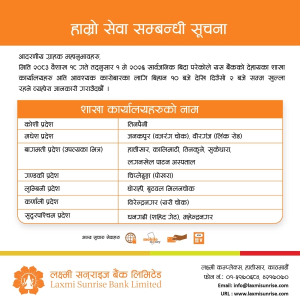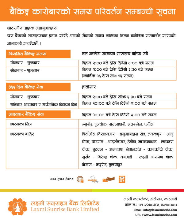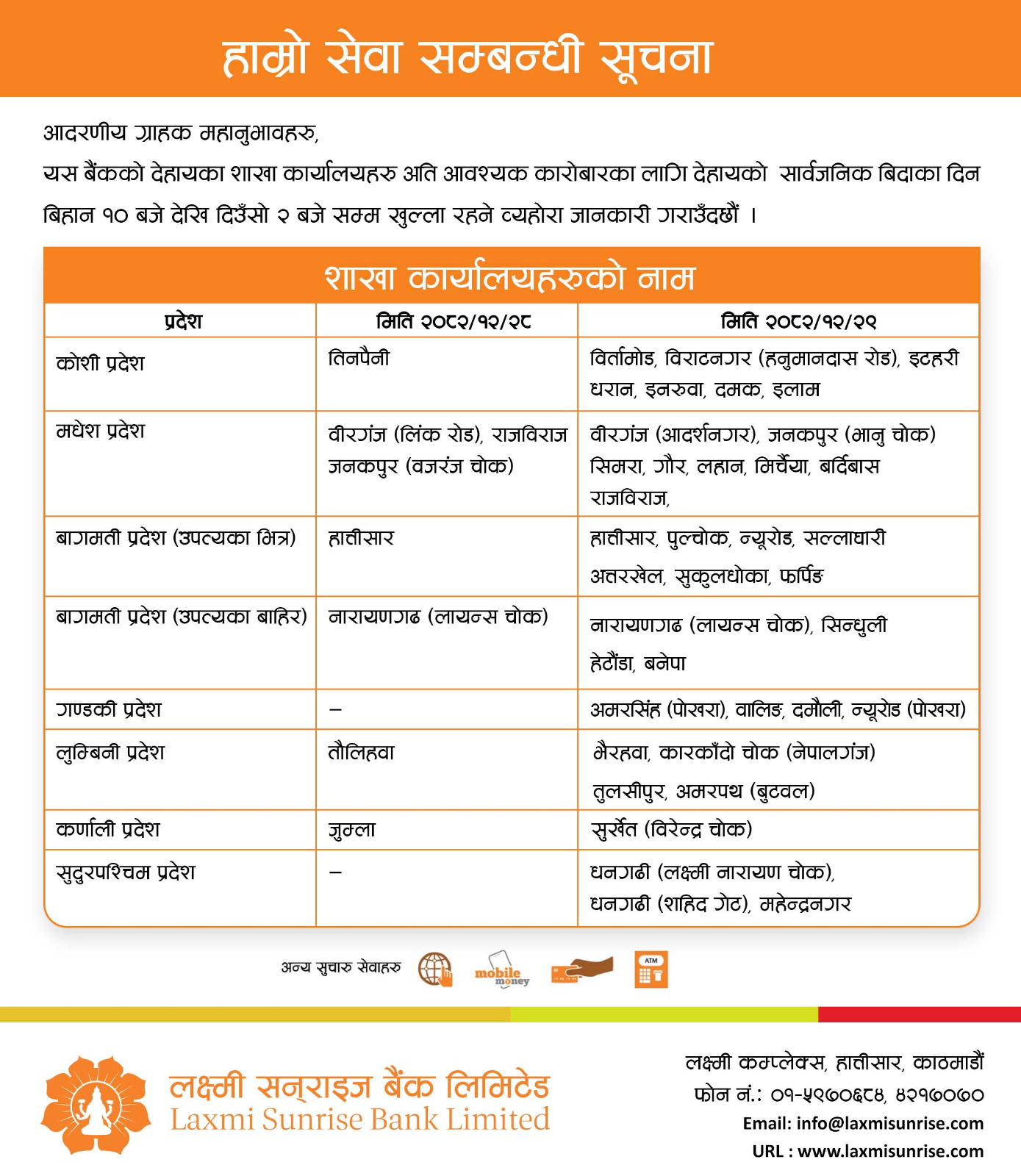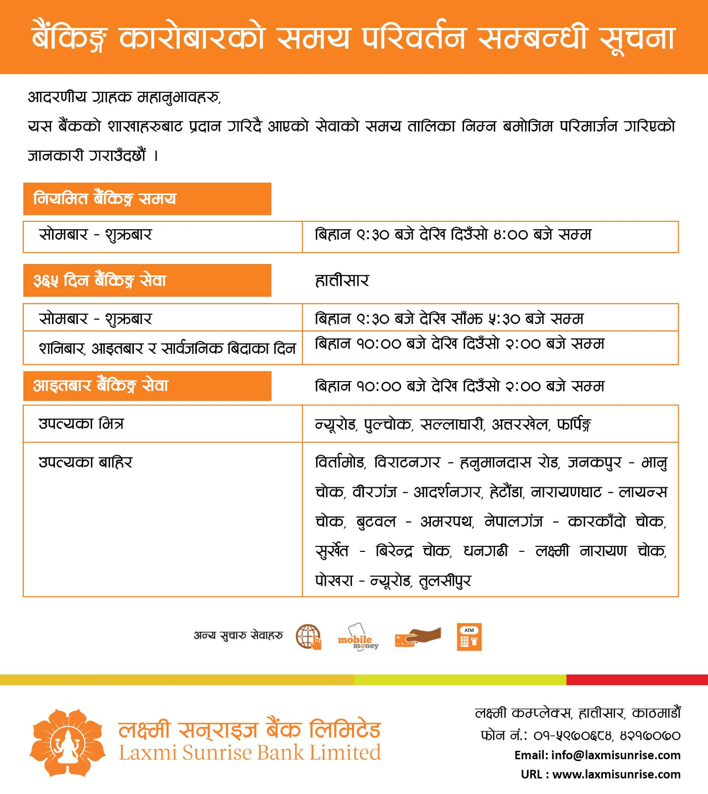 | Laxmi Sunrise iBank Fund Transfer | Per Transaction | NPR 2,000,000/- |